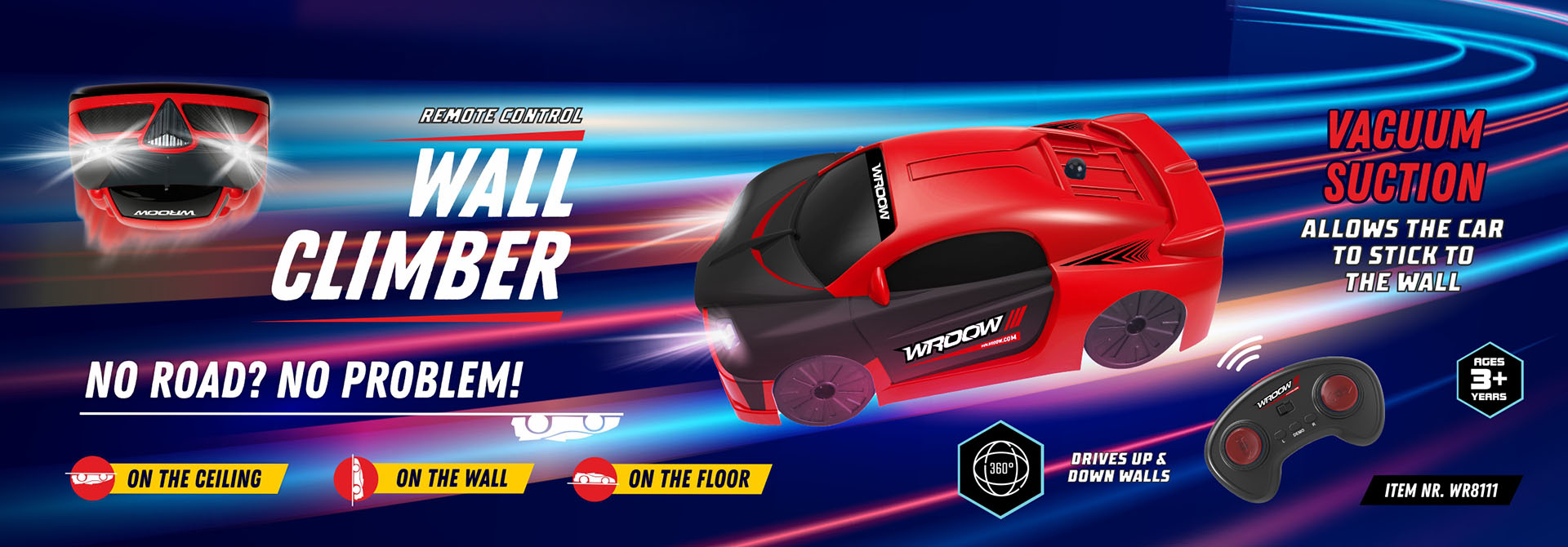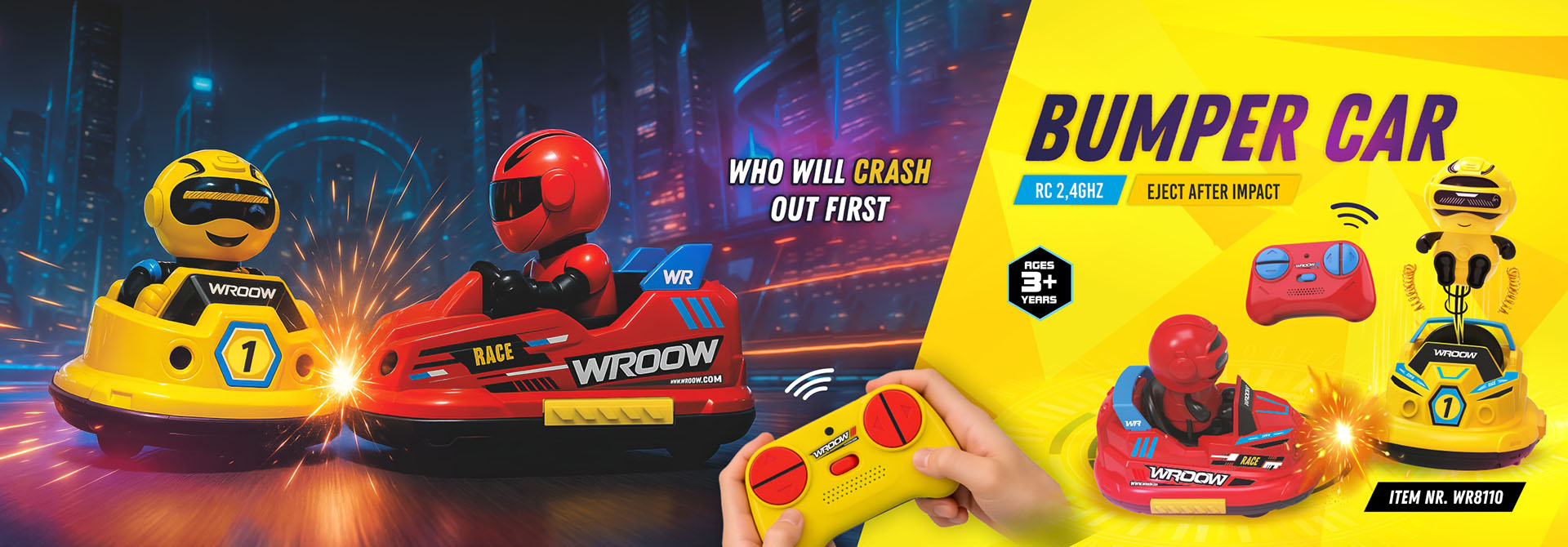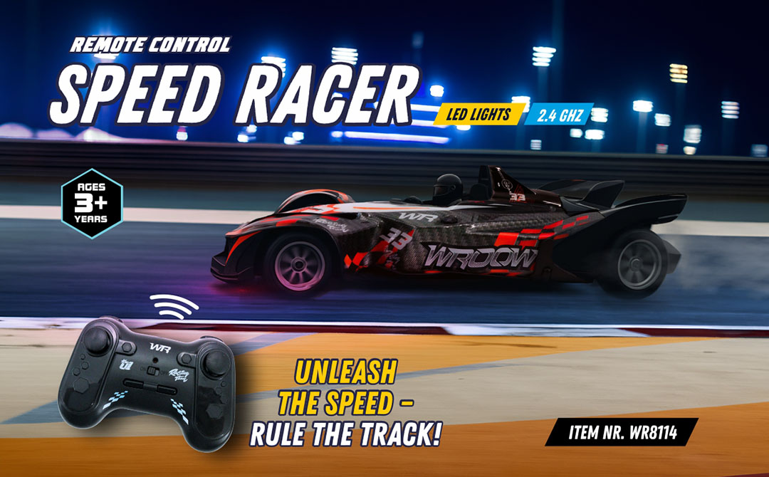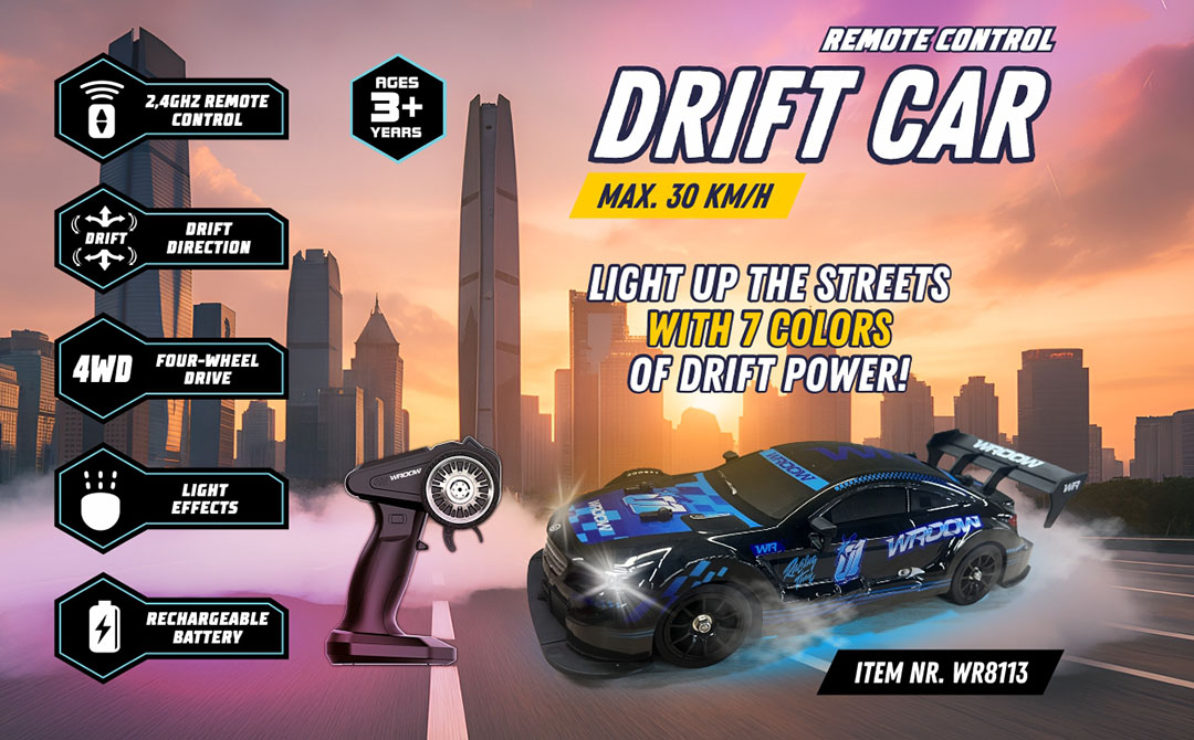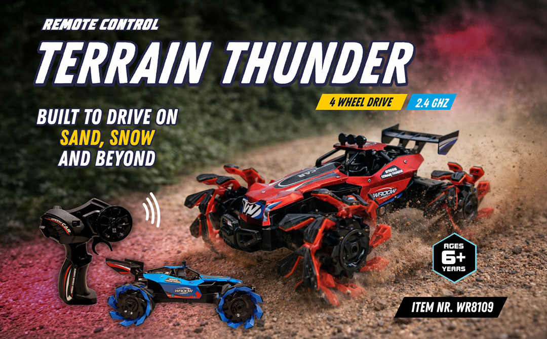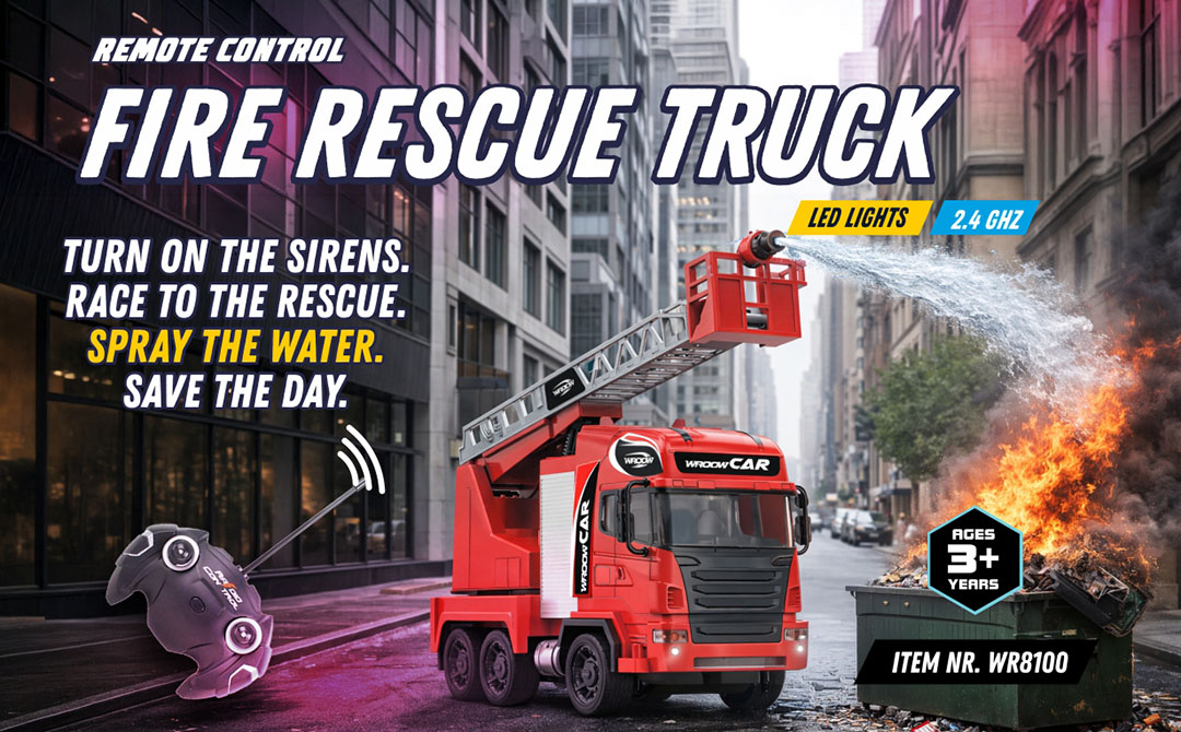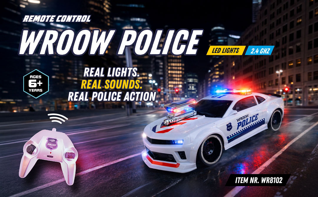 Our product range focuses on exciting remote-controlled vehicles and action toys designed to deliver speed, stunts and immersive play. The Wroow collection includes RC bumper cars, wall-climbing vehicles, racing cars, off-road trucks, stunt cars, police cars, fire rescue trucks and special action toys like the Spy Spider.